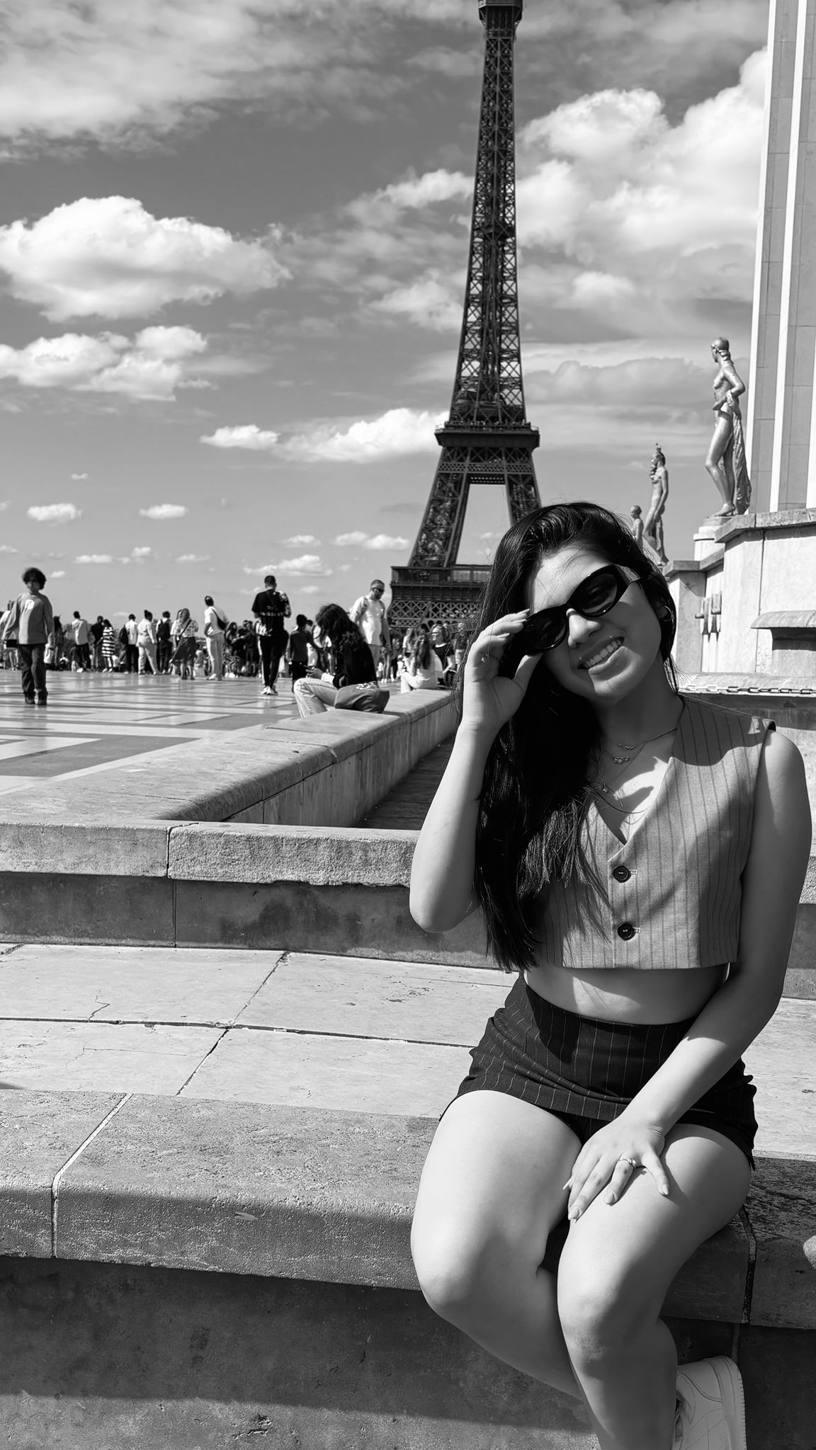 Das ist Kamila - unsere Co-Founderin. Geboren in Lima, Peru, aufgewachsen zwischen bunten Straßen und voller Träume. Schon mit 12 Jahren zeichnete sie Kleider auf ihre Schulhefte. Ihr Traum: Film und Modedesign studieren – und eines Tages eine eigene Brand gründen.